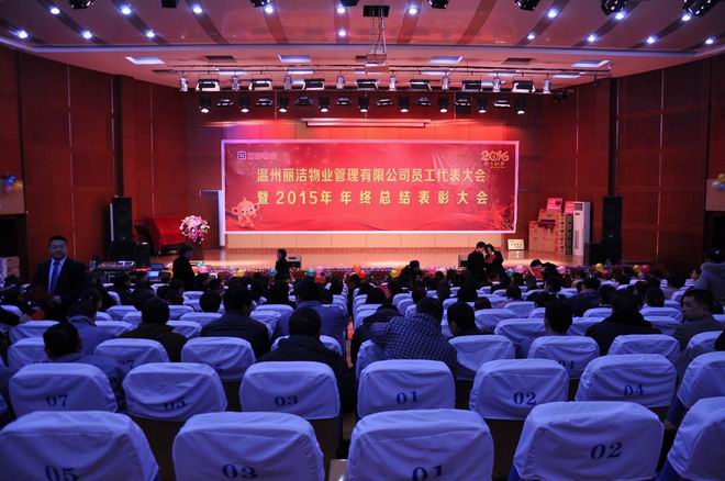 2016123日,我公司在樂清國際外國語學校報告大廳隆重舉行了《溫州麗潔物業管理有限公司員工代表大會暨2015年年終總結表彰大會》,外面是世紀寒潮寒風凜冽,報告大廳內300余麗潔物業員工代表齊聚一堂,暖意融融。