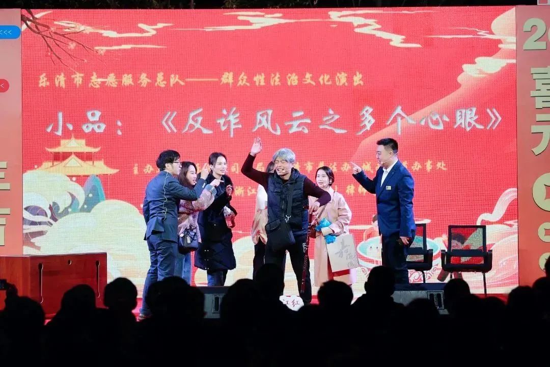 由石馬社區桑拿樂隊帶來的歌曲串燒點燃全場激情,由樂清市司法局普法辦、城南街道辦事處及浙江嘉瑞成(樂清)律師事務所的工作人員共同帶來的小品《反詐風云之多個心眼》笑點頻出,讓觀眾在一片歡聲中主動筑牢反詐安全防線,達到反詐宣傳目的。