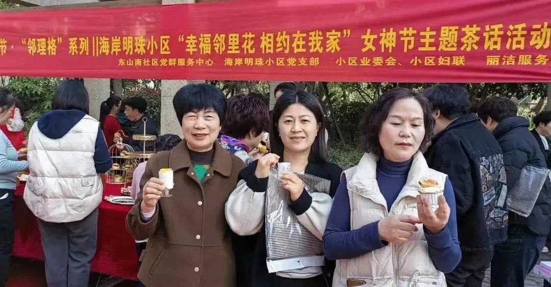 3月7日,海岸明珠小區舉辦了“幸福鄰里花 相約在我家”茶話主題活動,邀約女神業主們同聚“幸福廊亭”,共話美好人生。