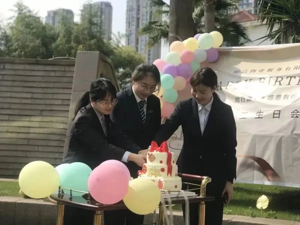 參會的基層同事平時大多奮斗在項目的一線,為了守護業主的歲月靜好,甘當一塊磚,一顆釘,一片葉,日復一日做著平凡而又不可或缺的繁重工作。他們默默無言,他們很少被看見。但在麗潔的生日會里,他們每個人都是自帶光環的主角,每個人都值得我們報以熱烈的掌聲!