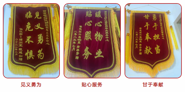 自去年錦悅園進場以來,麗潔服務已收到三面熱心業主送來的錦旗。沉甸甸的榮譽,既是對物業人的褒獎與鼓勵,也是鞭策與動力,指引麗潔人前行的方向。